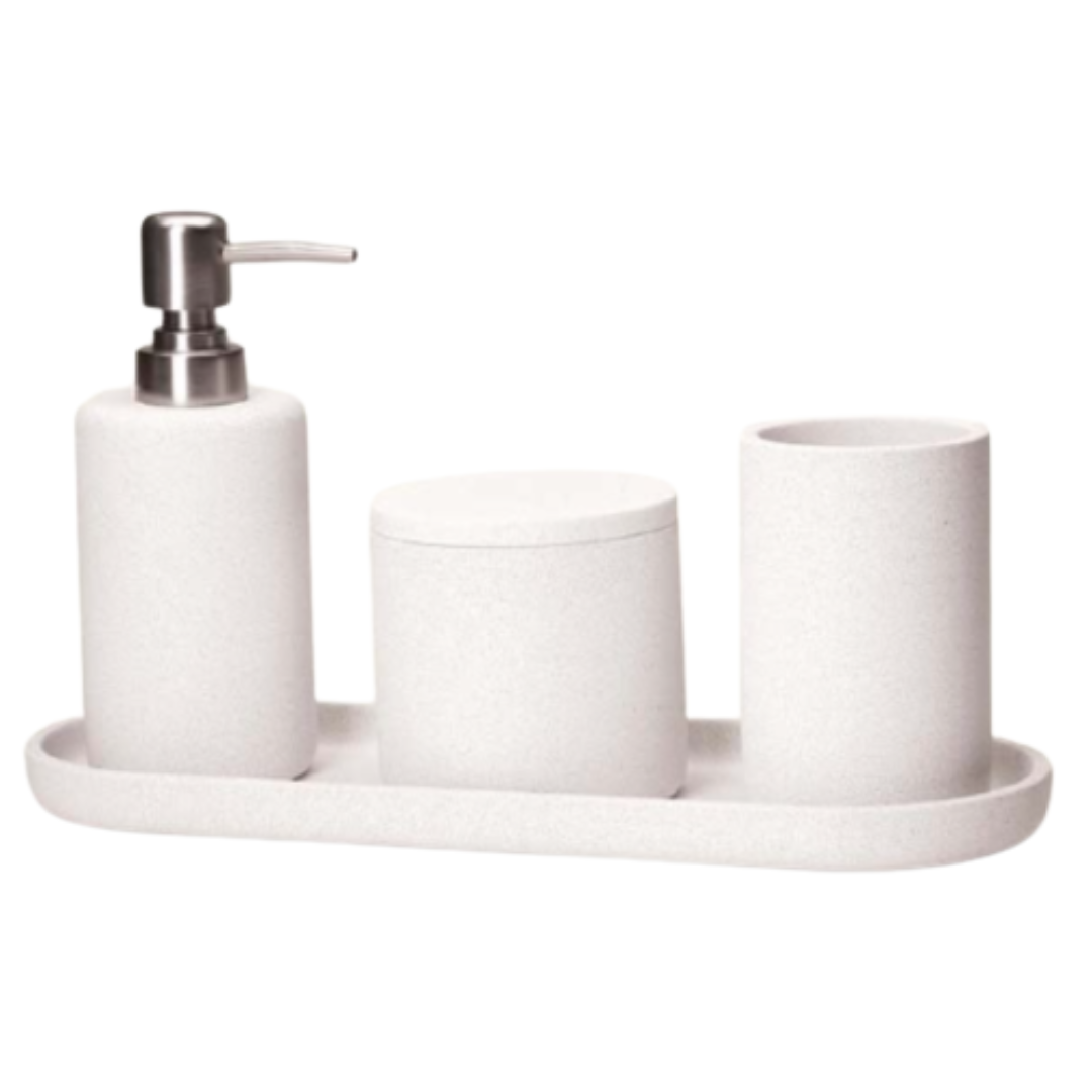 O Kit Lavabo além de versátil e multiuso é uma peça muito charmosa para compor a bancada do seu banheiro, ideal para armazenar escovas de dente, creme dental, algodão, cotonetes ou outros objetos pessoais da sua escolha, seu acabamento na cor off white, uma cor muito bonita, charmosa e elegante para compor a decoração do seu ambiente.